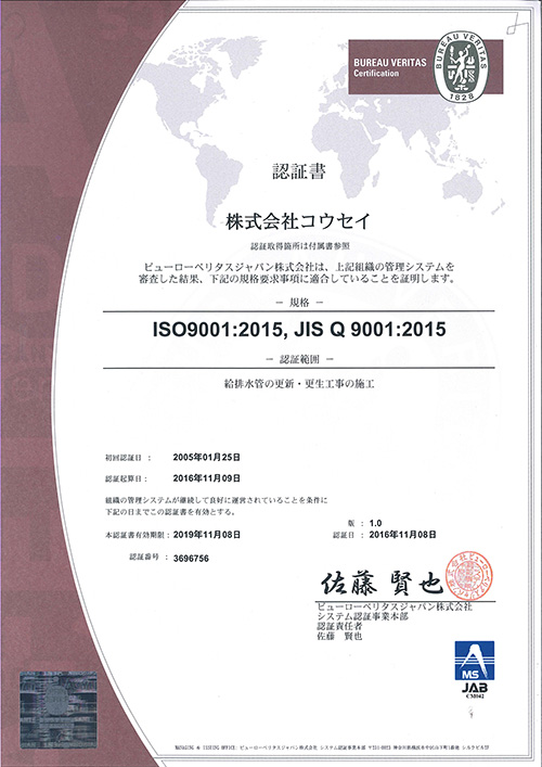 2016年11月8日、 ISO9001品質マネジメントシステムの再認証が完了しました!