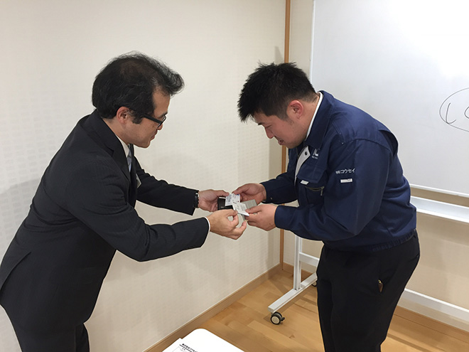 名刺の渡し方も、はっきりと理解できていないマナーの一つでしたが、実際に実演して教えていただき、分かり安く身につけることが出来ました(^^)