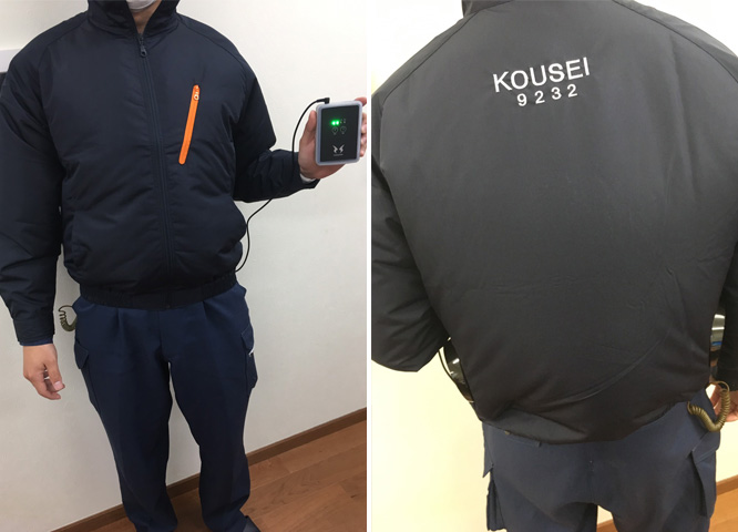 又、これまでも弊社では、熱中症には細心の注意を払ってきましたが、本年度より、従業員に空調付上着を支給していただきました!!