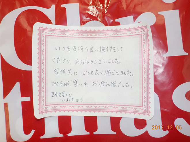 皆様もよい年末を迎えられますようお祈りしています。