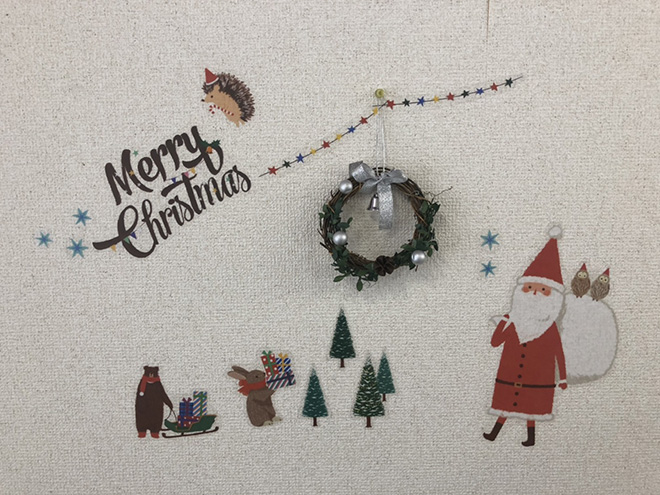 壁にはどうぶつたちがサンタさんのお手伝いを♪